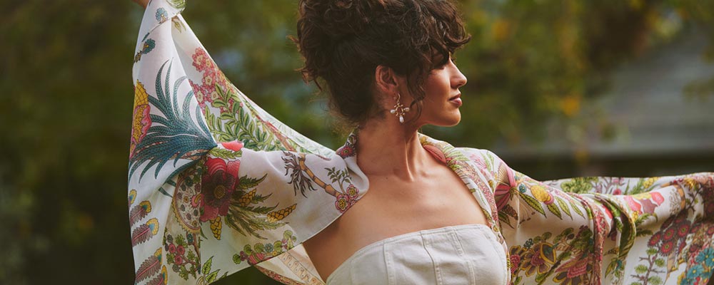 Bold prints. Fluid silhouettes. Conscious fabrics.Designed in Britain. Made in India.